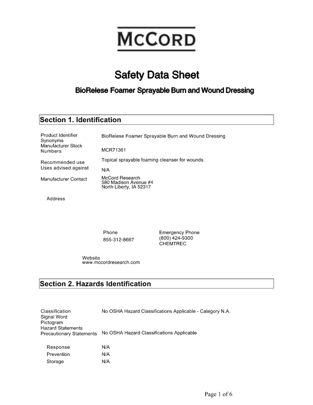 - Apply BioRelese Wound and Burn Dressing or AgFresh as indicated.