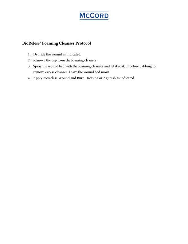 - Spray the wound bed with the foaming cleanser and let it soak in before dabbing to remove excess cleanser. Leave the wound bed moist.