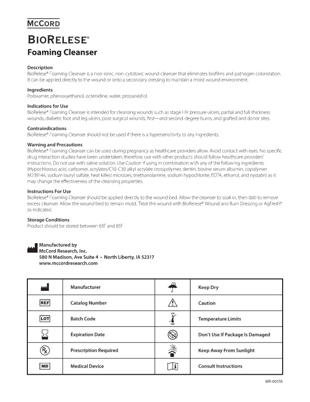 - BioRelese Foaming Cleanser is an innovative micelle smart foaming cleanser that cleanses and reduces biofilms and pathogen colonization.